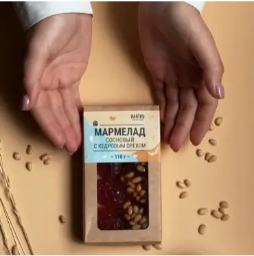 Особенность мармелада – сироп из сосновой шишки с ядром кедрового ореха.